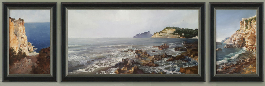 Hieronder: Impressionistisch drieluik van het zeegezicht bij Moraira.