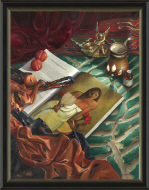 Het schilderij leidt ons naar de slaapkamer van de bruid, die dus wacht op haar gelief-de.Het