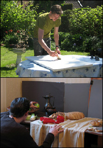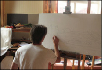 Vooraf aan het schilderen gaat vaak een lange periode van verzamelen, studie, werken aan het concept en uitproberen van verschillende composities.