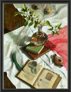 uit hun persoonlijk bezit. Waaronder het biografische boek "Borduursels buiten het stramien" waarin het gezinsleven op de Nederlandse ambassades wordt beschreven. De olielamp en de antieke boeken met Oudnederlandse teksten zijn een keuze geworden uit de grote familieverzameling. Als je goed kijkt naar de tekst in het opengeslagen boek, zie je dat een gedeelte van de tekst leesbaar is. Hoewel de overige tekst verder onleesbaar is vormt het geheel wel een acrostichon. De beginletters vormen het woord "ARGO" en is afkomstig uit het Latijn wat betekent: zuidelijk schip.